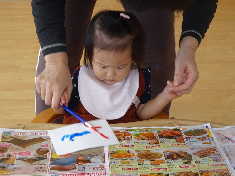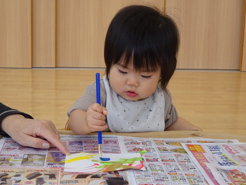 小坂園日記2025.11.18 えのぐをつかって、、、🎶 0歳児すもも組さん、筆と絵の具を使ってお絵描をしました😊 初めての筆にちょっぴりどきどきした様子だったり ダイナミックにたくさん色を重ねて塗ってみたり 画用紙の下に敷いてあるチラシに興味津々だったり、、、 思い思いに楽しみ、いろいろな表情を見せてくれました。 ・・・ これからも子ども達が心と体いっぱいに楽しさを感じながら 健やかに日々を重ねていけますように、、、✨