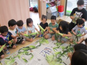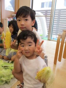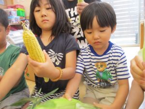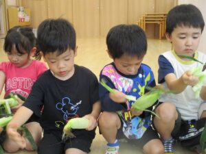 とうもろこしの皮むきを行いました🎵
