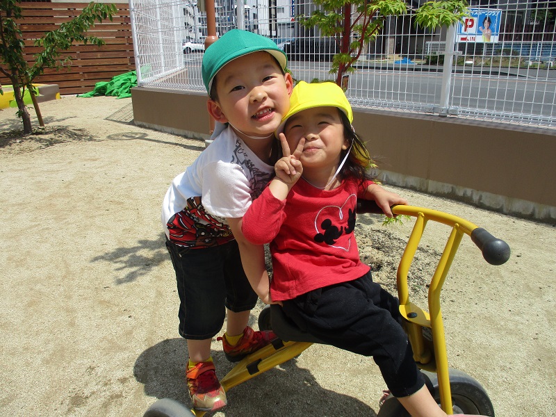 小坂園日記2019.05.10 ぽかぽかいい天気 小坂園 今日はいいお天気 ちょっと三輪車でおでかけ、楽しいな。 「おみずを入れて。そしてお花にあげるよ。」 「きょうのごちそうは」 「カレーライス」 「何つくろうかな?」 「おたのしみ」