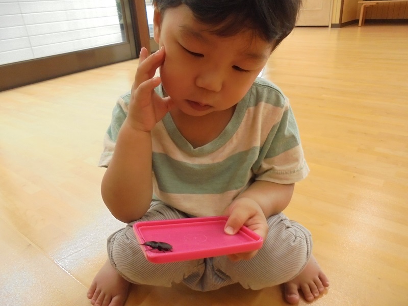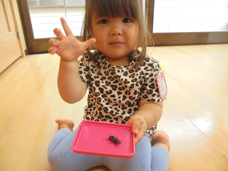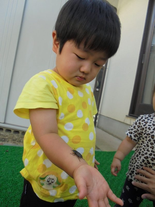 溝辺園日記2020.06.25 また来てね!!(溝辺園) さかのうえ保育園にクワガタが遊びに来てくれました!! 小さくて可愛いね💓 虫が大好きな友たちはこんな素敵な笑顔でクワガタとハイチーズ📷 小さなのこぎりがついてる~!!とじっくり観察しています👀✨ 「わぁ!僕の手に乗ったよ!!」 最後はみんなで逃がしてあげました😊 また保育園に遊びにきてね✋