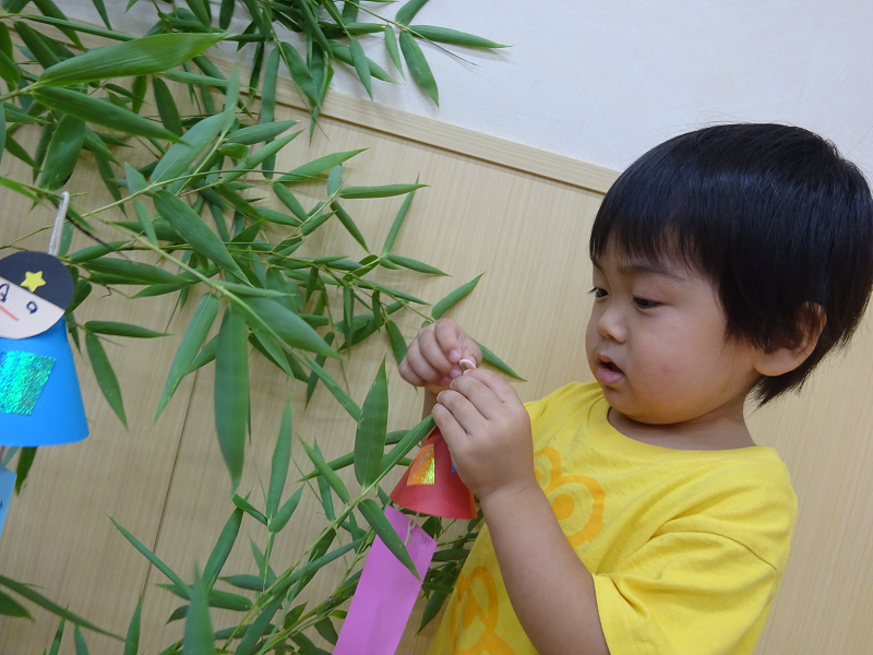 小坂園日記2020.07.07 みんなのお願い☆彡 (小坂園) ♩ささのは さ~らさら~♩ 歌が大好きなもみじ組。 たなばたさまの歌を元気いっぱい歌いながら七夕を楽しみにしています✨ みんなのお願いを書いた短冊と、みんなで作った笹飾りを笹に飾りました😌 どこにつけようかな~?? できた!自分でつけられたよ✨ みんなの願いが叶いますように…❤