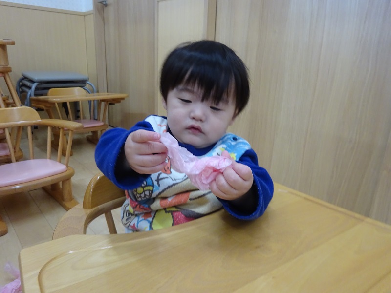 今日は、壁面製作で花紙をクシュクシュしました😊