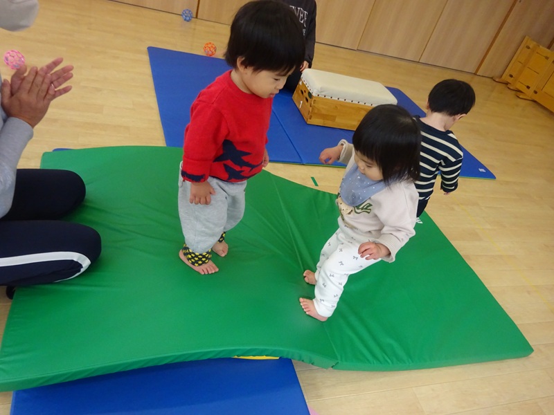 小坂園日記2025.12.05 体を動かして💪 0歳児すもも組さん、マット遊びを楽しみました♪ ハイハイしたり、マットの上を転がったり、滑ったり、、、 体をたくさん動かして遊ぶことができました😊 跳び箱にも興味津々でチャレンジできました!!✨ 園庭では、靴を履いて歩く練習をするお友だちの姿が、、、 いち、に、いち、に、、、 自分でいろいろなところに行けるの、楽しいね🐾 寒い冬が来ますが、体をおもいきり動かして 寒さに負けず、元気いっぱいで毎日を過ごせますように⛄🍂