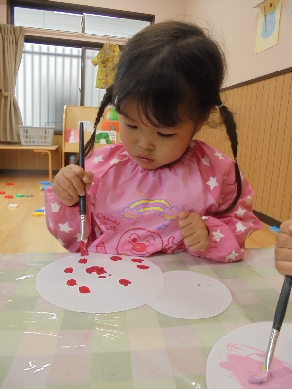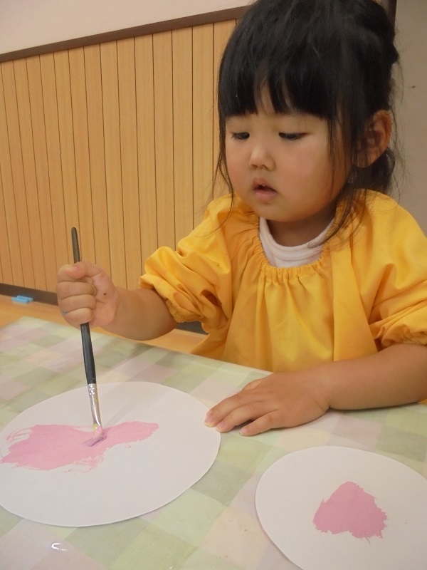「あか~!」「ピンク~」と言いながら、それぞれが好きな色で塗りました😊