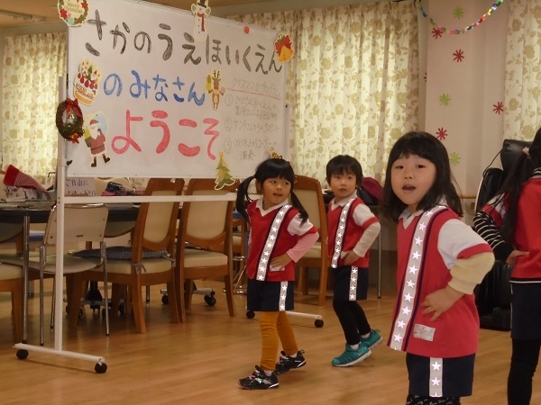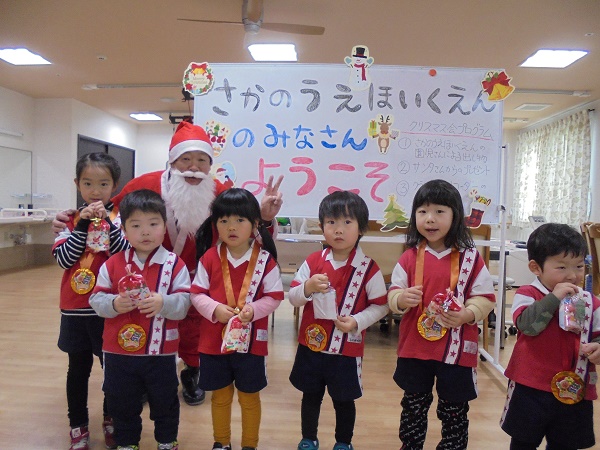 今日の給食2017.12.25 園外保育 栗林病院♫(*’ω’*) 勝山園 12月20日の園外保育は 栗林病院のおじいちゃんおばあちゃん達と一緒に クリスマスパーティ🎄をしました(*’ω’*) 歌や踊りのプレゼントをしたり・・ 一緒にリースの製作もしました!! なんと・・ サンタクロースの登場に子どもたちは 大喜び!!😲 サンタさん🎅からのプレゼント📦もらいみんなとても 嬉しそうでした( ◠‿◠ ) クリスマスまであと少しですね(*”ω”*)