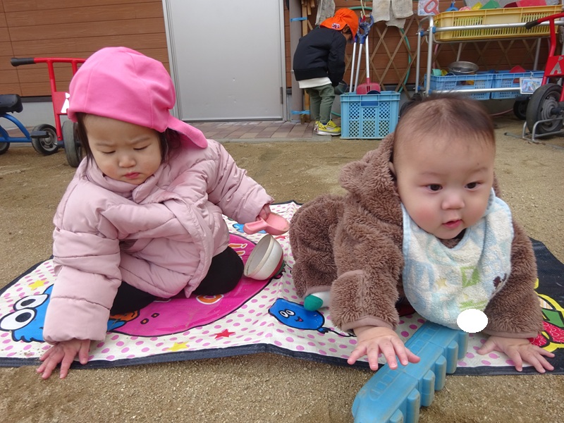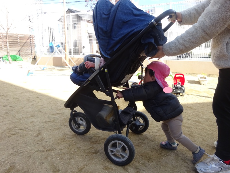 小坂園日記2025.12.05 園庭あそび🎈 毎日、元気いっぱいに園庭遊びを楽しんでいます😊 遊び疲れて、ベビーカーで眠ってしまったお友だち😴 先生と一緒にベビーカーを押してあげるお友だちがいました。 それを見ていた別のお友だちも、一緒になってベビーカーを押してくれました。 大好きな園庭遊び、これからもたくさん楽しもうね🐻