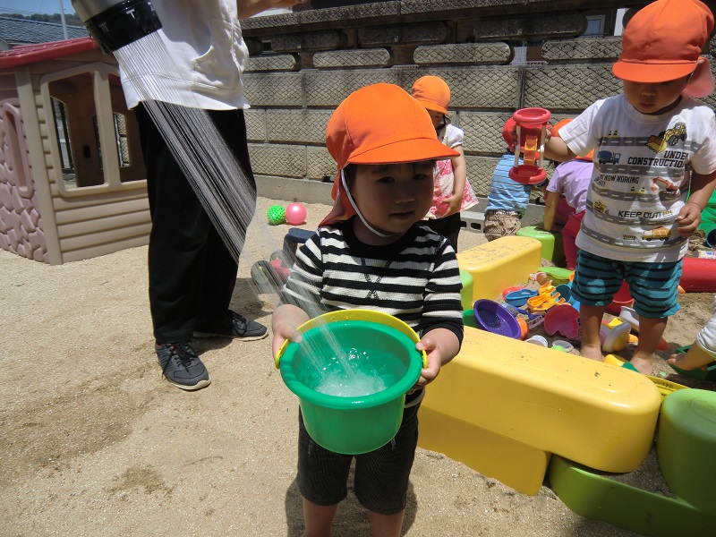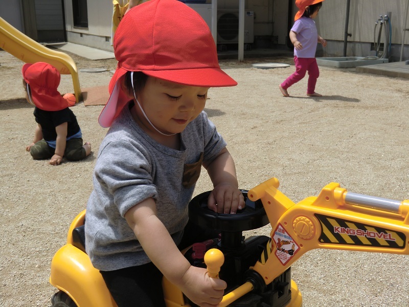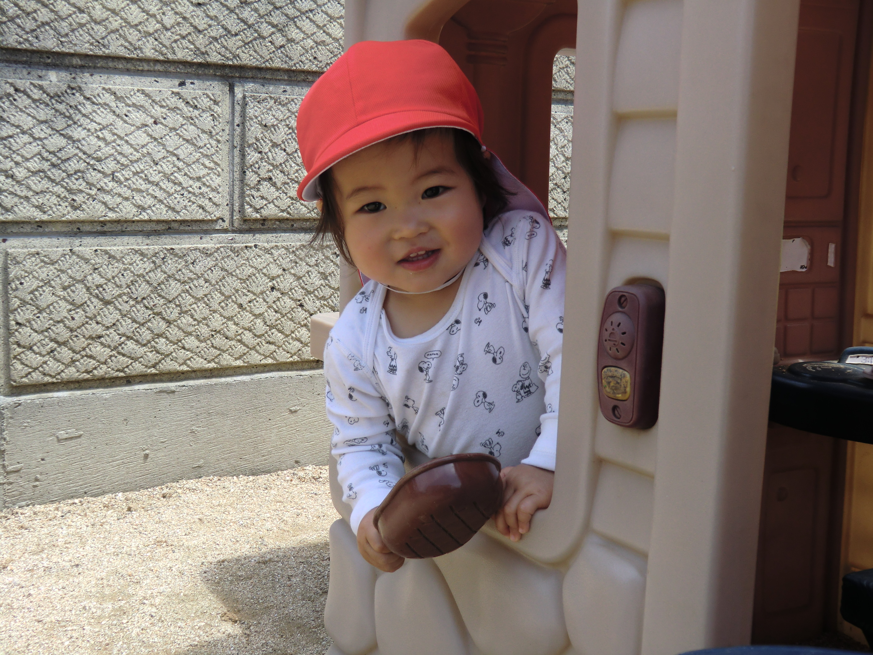 溝辺園日記2019.05.10 園庭で遊んだよ♪ 溝辺園 お天気に恵まれて、園庭でたくさん遊びました! 運転しています!かっこいいでしょ~!! おうちの中から「こんにちは!」 お砂場でも楽しみましたよ♪ お水も使って・・・気持ちいいな~! また楽しく遊ぼうね~!!