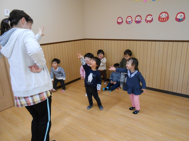 溝辺園日記2018.01.13 季節の歌♪ 溝辺園 おれんじ組ではお集まりで季節の歌を みんなで歌っています♪♪ 今日は「おにのぱんつ」を歌いました✨ 振り付けもばっちり! みんなのお気に入りの一曲です(*^▽^*) 〔強いぞー!〕のポーズです☜ しっかり決まっていますね✨✨ また一緒に歌おうね💛