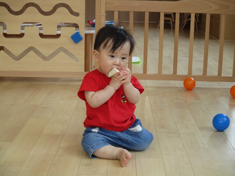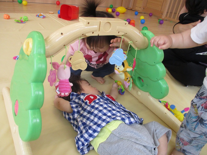 小坂園日記2019.06.01 室内遊び(^^♪ 小坂園 好きな玩具を見つけると👀 手に取って振ったり食べたり… 楽しむすもも組さん🎵 「サンドイッチみぃ~つけた😊」 パクッ!! 時には友だちとふれあったり 見つめ合ったりすることもあります💕