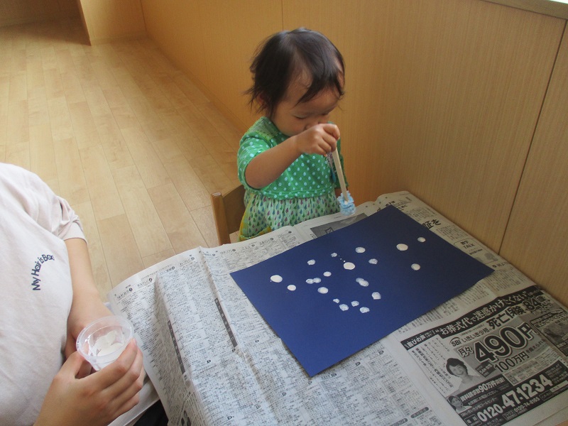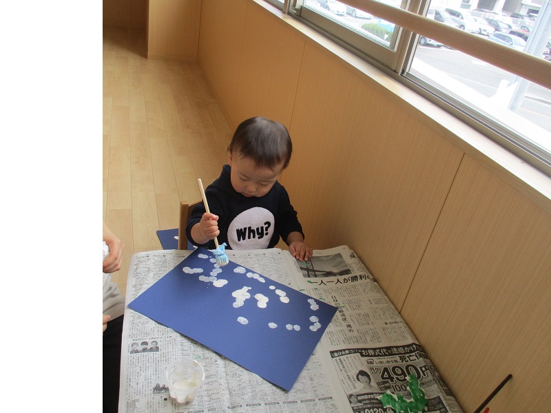 小坂園日記2020.02.06 楽しいこといっぱいしたよ! 小坂園 英語教室にも すっかり慣れた様子です!!😊 ケビン先生を見つけると 「あ!ケビン先生いたよ!」と 教えてくれるようになっています。 「sunny! rainy!」 嬉しそうに答えていました⭐ 初めて製作で スタンプに挑戦してみましたが とっても上手にポンポンポン!とできました☺