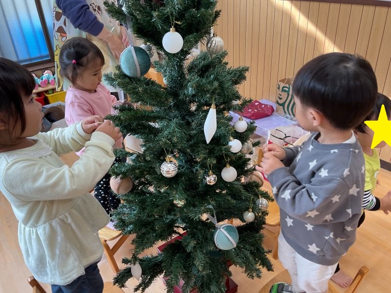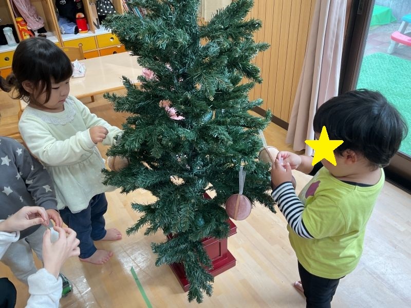 溝辺園日記2025.11.26 飾りつけ🔔🎄 お遊戯会の練習の後、クリスマスツリーに飾りつけをしました🎄 ツリーが出てくると興味津々なもみじぐみさん。 1つ1つ丁寧に飾りつけが出来ました🎵 サンタさん、見てくれてるかな~?クリスマスまで楽しんでいきたいと思います🎅