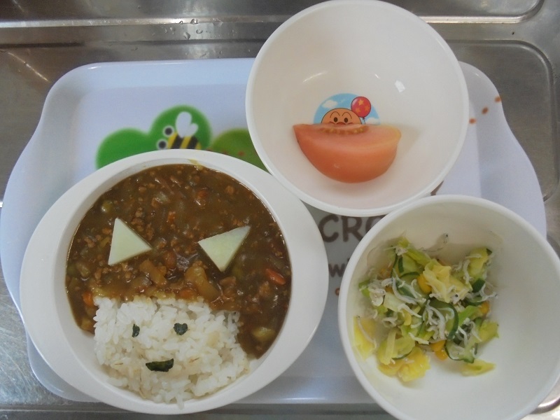 キーマーカレー 胡瓜とキャベツサラダ トマトです