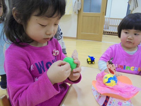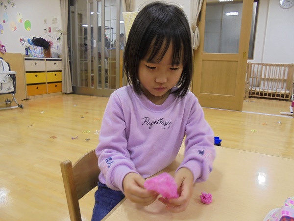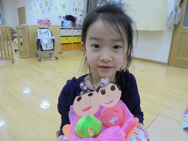 小坂園日記2018.03.01 おひなさまを作ったよ! 勝山園 おひなさま🎎の仕上げをしました(*^-^*) ピンクのフラワーペーパーをくしゃくしゃにした後、広げて色とりどりの マスキングテープを張った土台に貼ります( ^ω^ ) そして、先日作って乾かしておいた紙粘土のおひなさまに付けたテープを 慎重に剥がして・・ 土台に置けば出来上がり!! 世界でひとつのおひなさまが仕上がりました♫ とっても素敵です(^_-)-☆