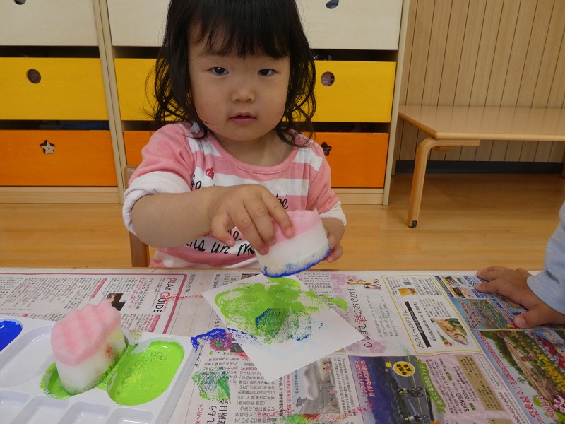 溝辺園日記2018.05.01 こいのぼり製作 溝辺園 スタンプを使って「こいのぼりの製作「」をしました🎏 スタンプ ポンポン🎵 どんなのができたかな~😊 見てみてー☆彡 どんなこいのぼりになるかは 当日のお楽しみ💛