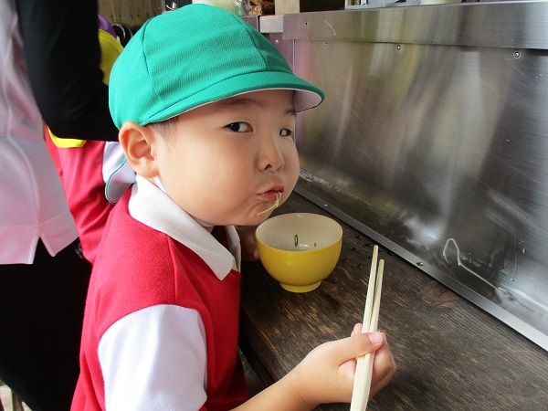小坂園日記2018.08.15 そうめん流しに行ったよ♪ 小坂園 園外保育で東温市にある“上林水の元そうめん流し”へ行きました。 たくさんの自然に囲まれて食べるそうめんは格別なようで、 上手にすくって食べる子ども達♪ 本当に美味しそうでした(*´▽`*) 風穴にも行きたっぷり自然を満喫することもできました(^_-)-☆