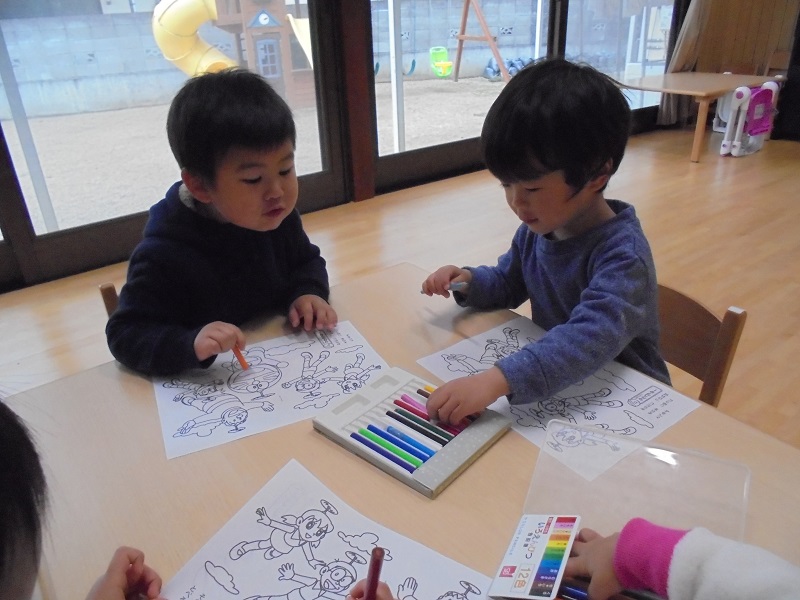 今日はみんなでぬり絵をしました☺