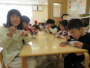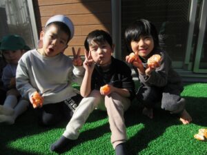 小坂園日記2026.01.07 みかんパーティー&七草がゆ みんなで取りに行った七草を七草がゆにして食べました😊 美味しい!と大好評でした💓 そしてみかんをいただいて、みんなでみかんパーティーをしました😊 甘くておいしかったです🍊