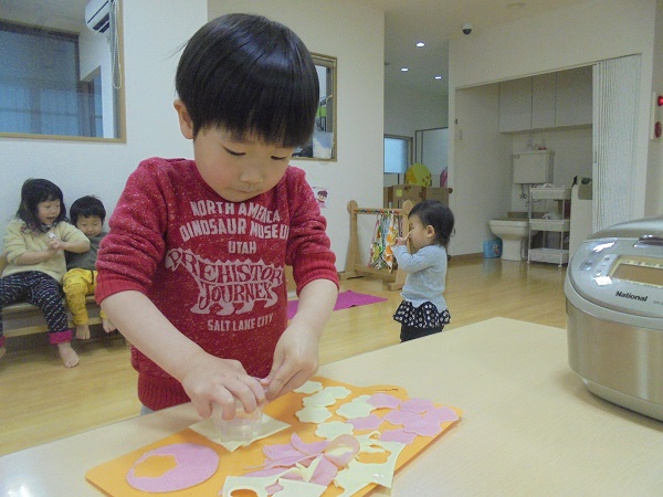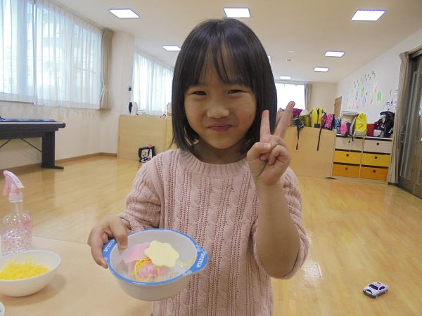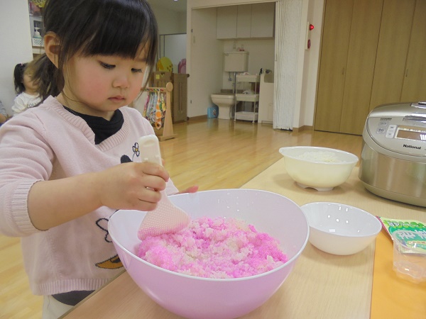 2月・3月合同のお誕生会で“カップ寿司”を作りました(*^^*)