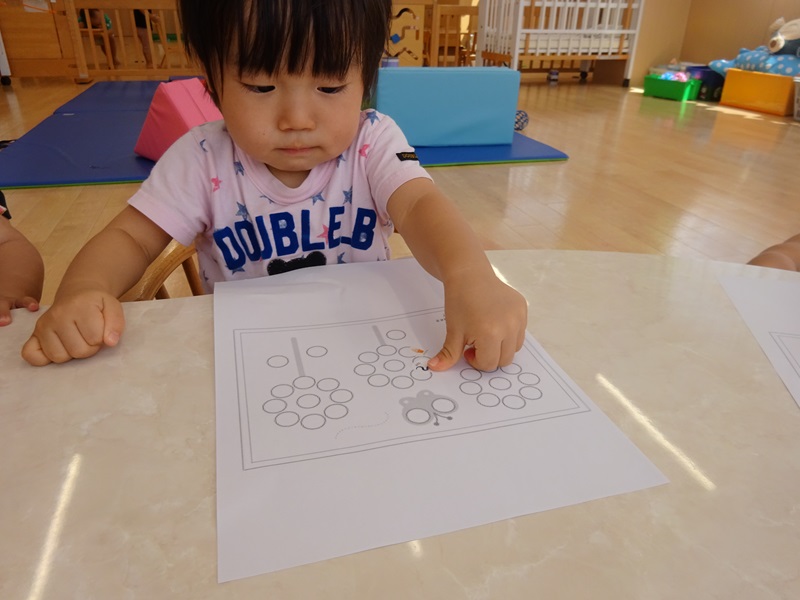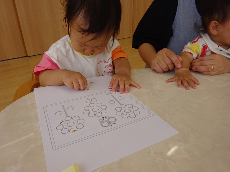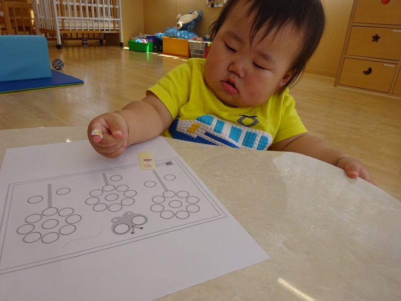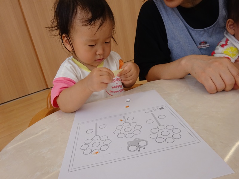 小坂園日記2024.09.11 ペタペタ シール貼り遊びに挑戦しました😊 毎日シール帳にシールを貼るのも上手になってきたので行ってみたのですが 指先を上手に使いながらシールをはがして貼ることができていました😁