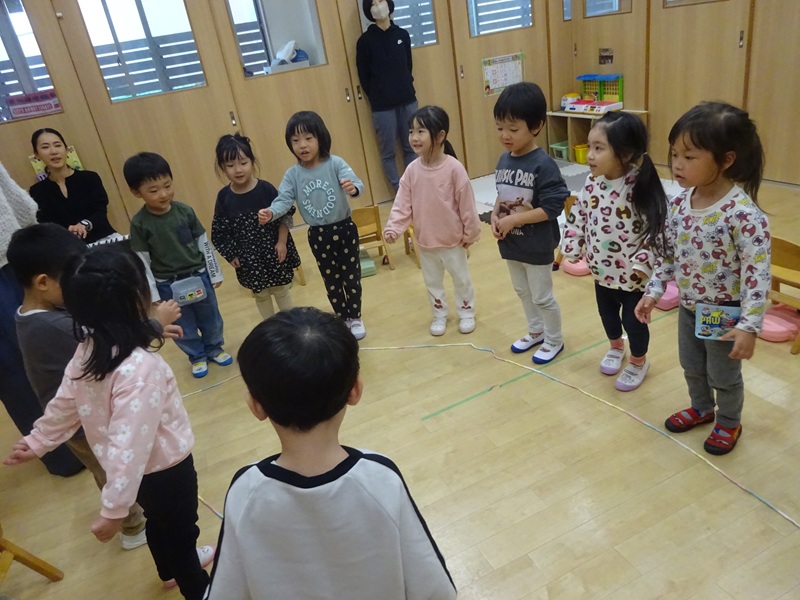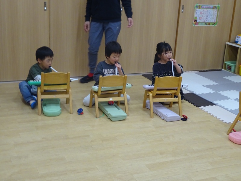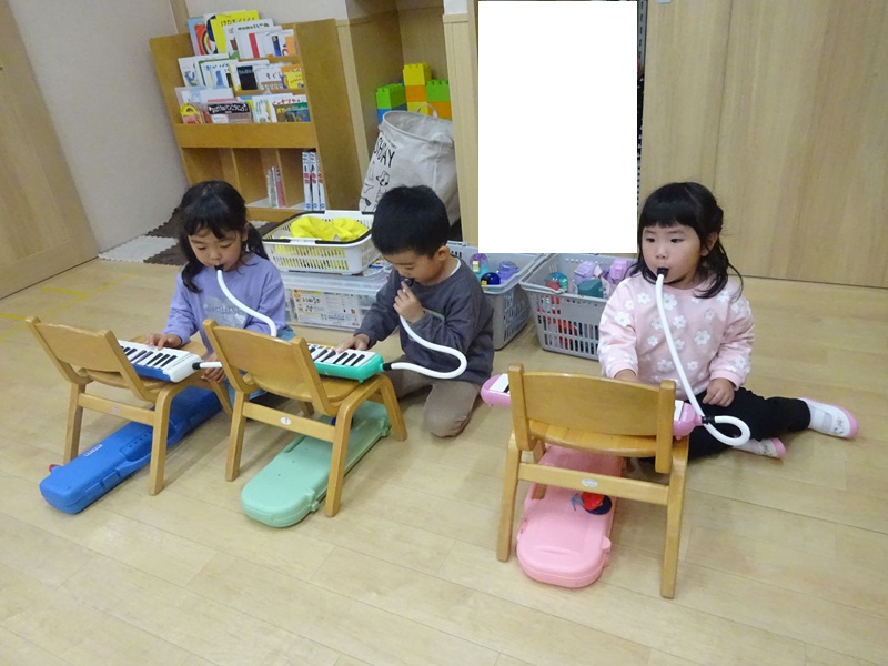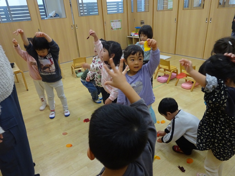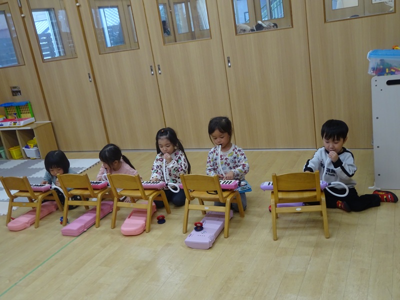 小坂園日記2025.11.13 リトミック教室🎹 毎回楽しみにしているリトミック教室に参加しました😉 まつぼっくりの歌をみんなで歌いながらジャンプ! 落ち葉をヒラヒラ🍂 音楽に合わせて鍵盤ハーモニカでドの音を吹く練習もしました💮