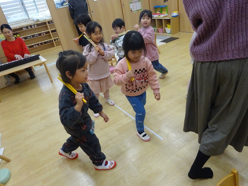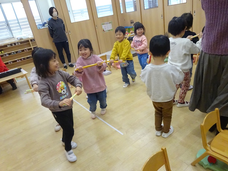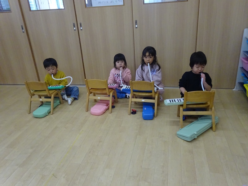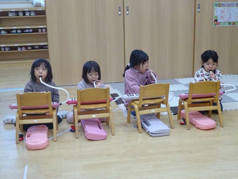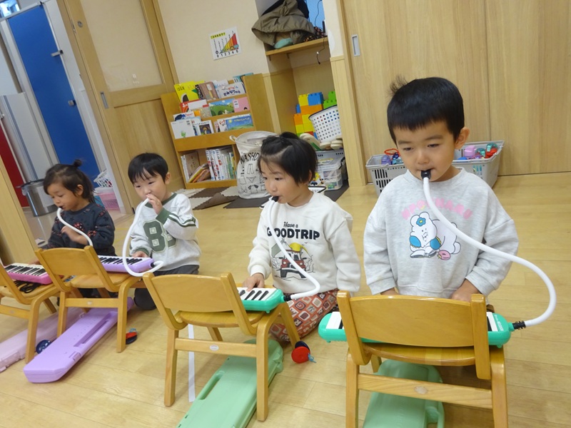 小坂園日記2025.12.13 リトミック教室😊 リトミック教室に参加しました😊 クリスマスソングに合わせてサンタやトナカイになりきって身体を動かしました😄 幸せならてをたたこうに合わせて鍵盤ハーモニカの演奏も頑張りました👏