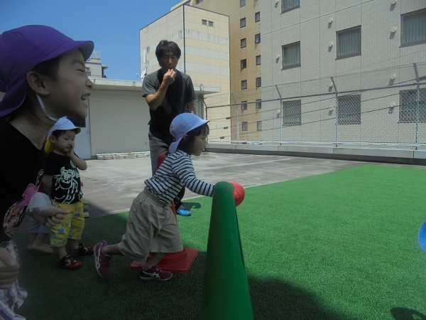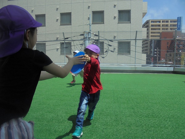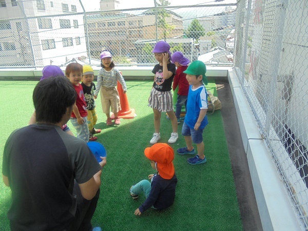 小坂園日記2018.05.14 リレーの練習♪ 勝山園 今日の体操教室はいろいろなバトンを使ってリレーの練習をしました。 体操の先生の説明を一生懸命に聞く子どもたち。 始めはポイントをバトンにして、よういスタート!)^o^( しっかり次の友だちにつなげることができました(*^▽^*) 次はこーんな大きなコーンをバトンにしてスタート! 落とさないように、ぶつからないように、でも早く渡せるようにと 頑張りました!( `ー´)ノ 運動会までにいろいろなリレーの練習をしていこうね!(^^)!