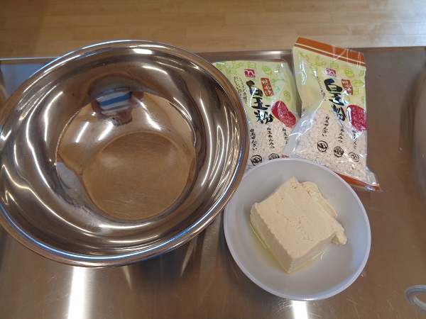 お水はあまり使わずにお豆腐と白玉粉を混ぜて作りました。