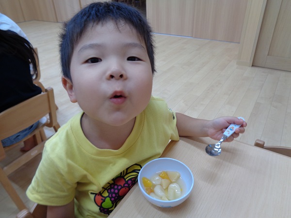 今日は8月生まれさんのハッピーデイで白玉ポンチを作りました♪