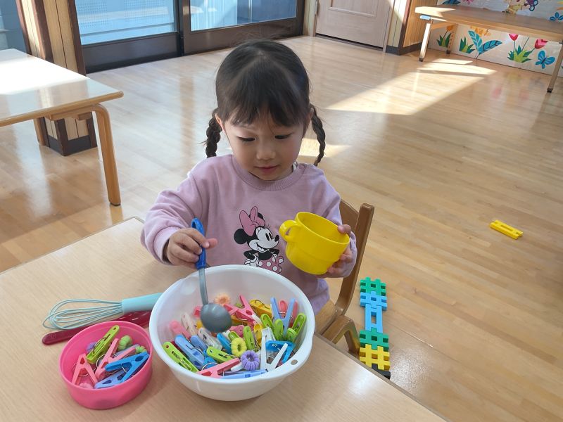 溝辺園日記2026.02.18 今日も元気いっぱい♪ 今日も元気いっぱいなもみじ組さんです! 室内では、パズル遊びに夢中です!お友だちと並んで行っている姿はとても微笑ましいです😊 「みてみてー!ごはんつくってるの」 園庭に出ると、少し暖かさも感じてきました😄 お友だちを追いかけたり、追いかけられたりして鬼ごっこを楽しんでいます♪走るスピードも速くなってきました🌟 たくさん体を動かして遊んだので給食もおかわりするほど元気いっぱいなもみじ組さんでした✨✨