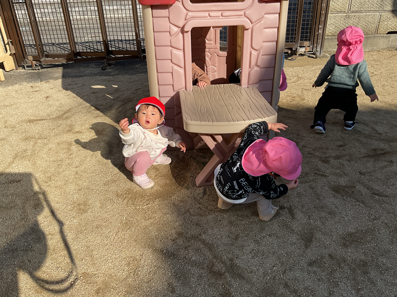 溝辺園日記2026.01.07 今日も元気いっぱい✨ お部屋や園庭で元気にあそんでいます✨ 絵本を見るのが好きで、読み聞かせでは、集中して見ています☺ 新しお友だちも増えました💕 園庭では、歩けるお友だちが増え、好きな場所に歩いて行ったりと探索を楽しんでいます✨ 今年もよろしくお願いいたします☺
