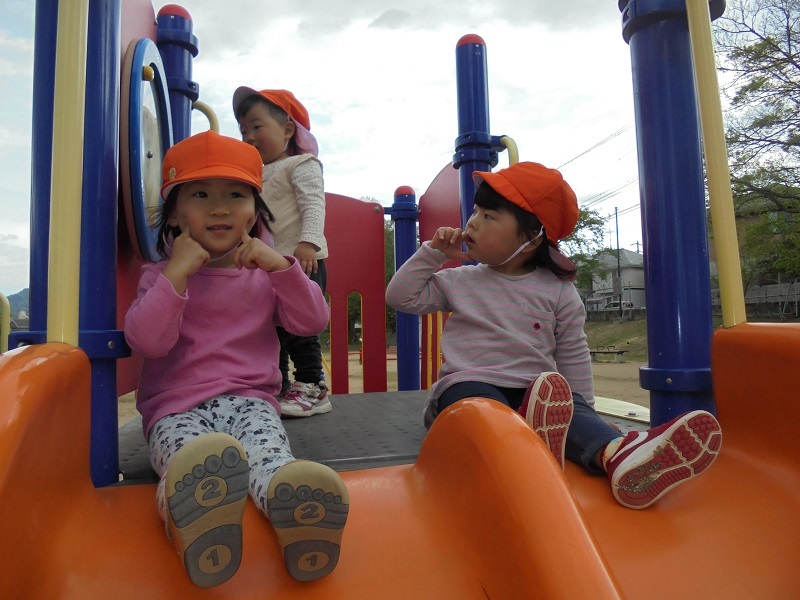 溝辺園日記2018.04.12 園外で運動遊び!溝辺園 今日は公園で運動遊びをしました✨✨ 最初はちょっと緊張気味のもみじ組さん💦 でも慣れてくると・・・ 先生と一緒にたくさん体を動かして 楽しむことが出来ていました(*^▽^*)💛💛 おにいちゃん、おねえちゃんの真似をして 後ろ歩きもできるようになりましたよ! 最後は遊具で遊びました(^^)/ たくさん遊んで楽しかったね(^_-)-☆