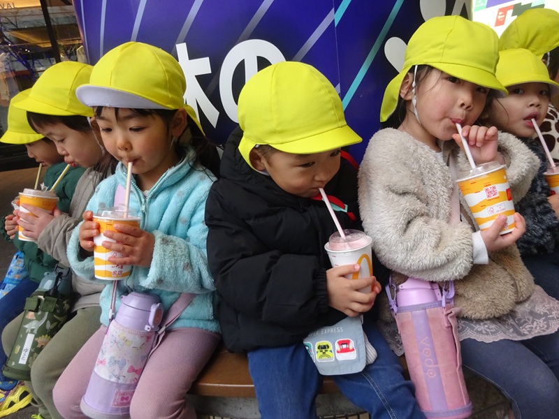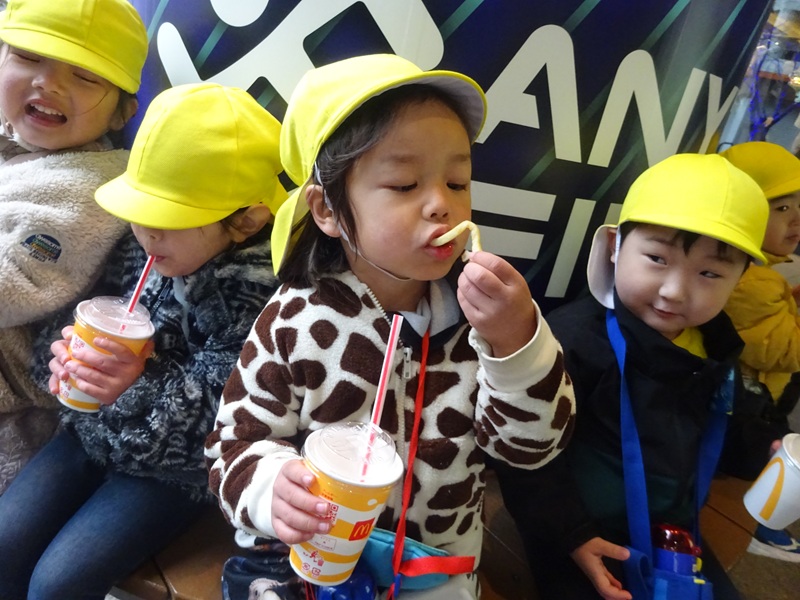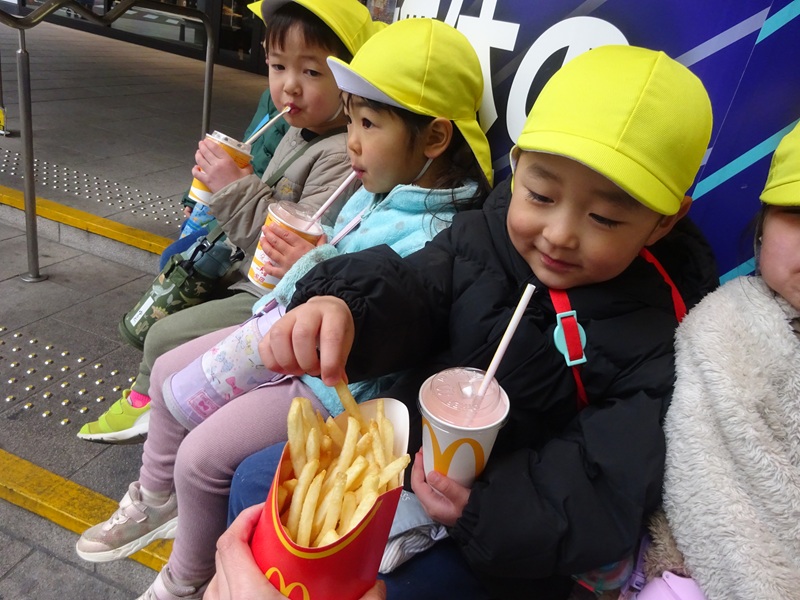 小坂園日記2026.02.05 園外保育大街道&ロープウェイ街 楽しみにしていた大街道、ロープウェイ街にお散歩に行きました😊 長い道のりでしたが頑張って歩いて行って帰ることができました! お友達とたくさんお話しながらのお散歩💛 お土産屋さんにも行きました😁 マックシェイクとポテトまだかなーとみんなで待っています😂 そして念願のマックシェイクとポテト🍟 「おいしい!」と大興奮でした😍 楽しかったね♡