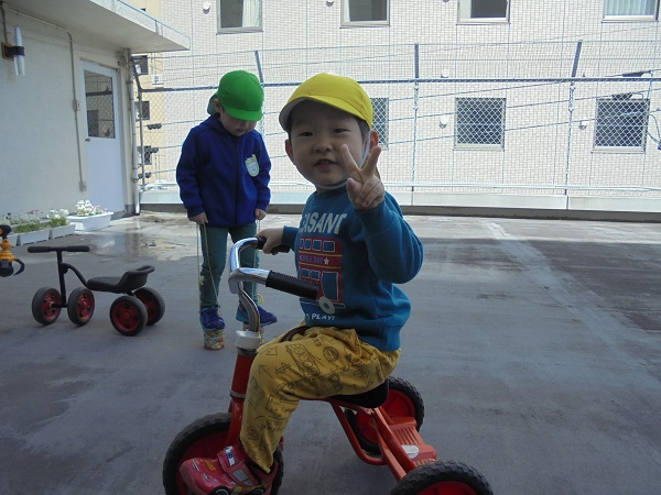 小坂園日記2018.04.05 園庭で遊んだよ! 勝山園 日差しが暖かかったので園庭に出て遊びました♫ 久しぶりの外遊びにみんな大喜び(*^▽^*) 男の子たちは、三輪車に乗ったり、 缶ぽっくりをしたり、かけっこをしたりと活発に遊んでいました(^^♪ 一方女の子達は・・・ ままごとでハンバーガーショップを開いて楽しんでいました♫ もちろんお客さんは保育者!おいしそうなハンバーガーを 買うことが出来ました♫ごちそうさま~(*´▽`*)