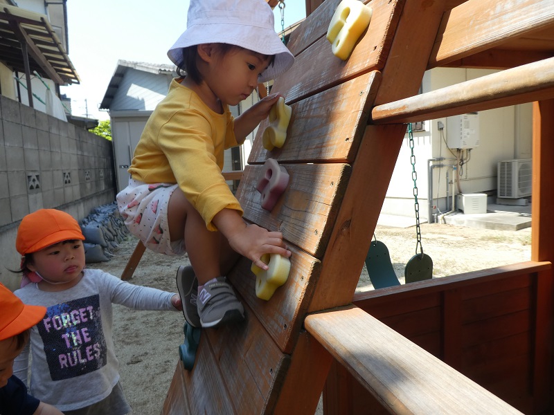 溝辺園日記2018.05.17 外遊び(^^♪ 溝辺園 日中は暖かくなり 外で遊ぶのにとっても いい季節となりなした😊 子どもたちも外遊びを とても楽しんでいます🎵 身体を動かすことが好きな子どもたち!! 上手に登れるようになりました✨ 砂場ではままごと!! 「はい、どうぞ(^^♪」 「あ~ん💛」 きれいな花も咲いていました🌸 天気が良くてとっても 気持ちがよかったね(#^^#)
