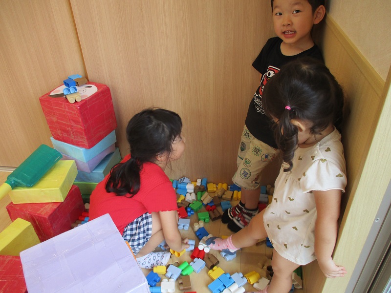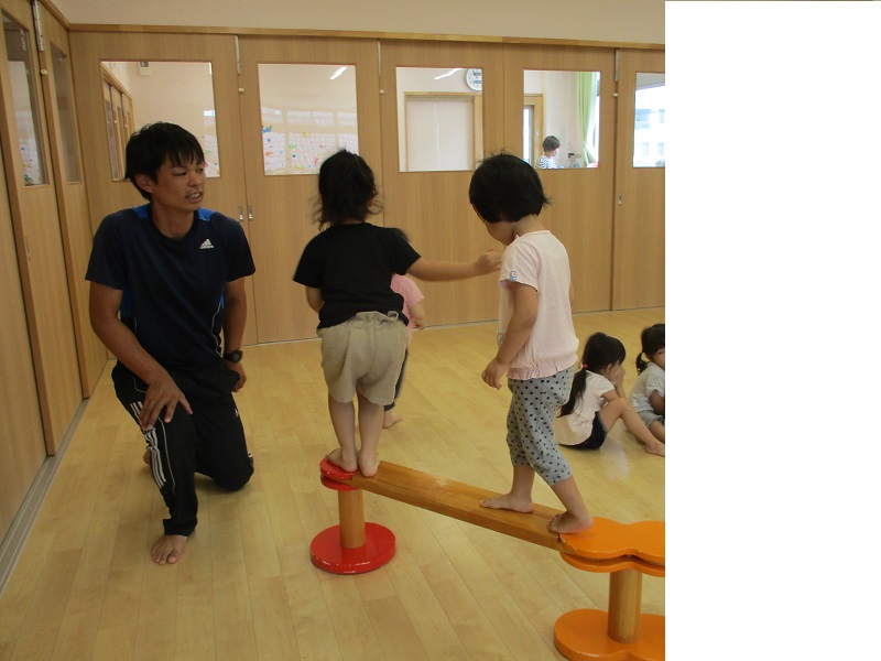 小坂園日記2019.08.01 暑い一日 小坂園 園庭にセミの鳴き声が聞こえてきました。 「せみがおる。」と桜の木にいるセミを子どもたちが発見! 今日は体操教室 平均台を歩きます 「落ちないようにね。」 「お家ごっこしよう。」 「プールだよ。」 ミニトマトも収穫したよ。 暑い一日でした。