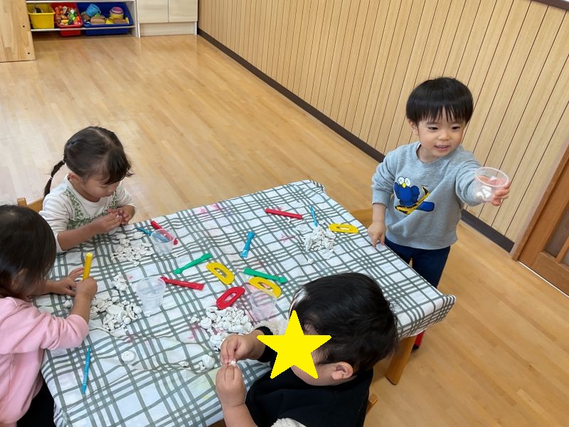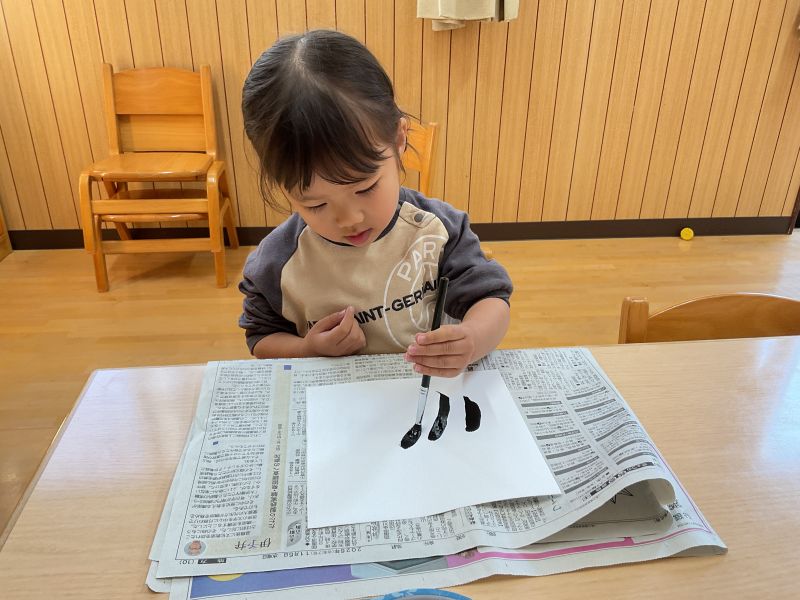溝辺園日記2026.01.09 楽しいね♪ 今週のもみじ組さんです♪ 年末年始に家族とお出かけしたことやおいしいご飯をたくさん食べたことなどお休みの日のことをたくさんお話してくれました♪ 久しぶりの登園でもげんきいっぱい! 書初め風の絵の具遊びやうちわを羽子板に見立てて羽根つき風な風船遊びをしました🎵 また、粘土遊びやパズル遊びも大好きで、毎日楽しんでいます😝 卒園まで後3か月。みんなで元気いっぱい、楽しく過ごしていきたいと思います😄 今年もよろしくお願いします😊