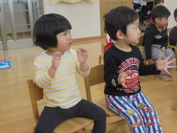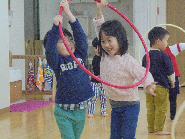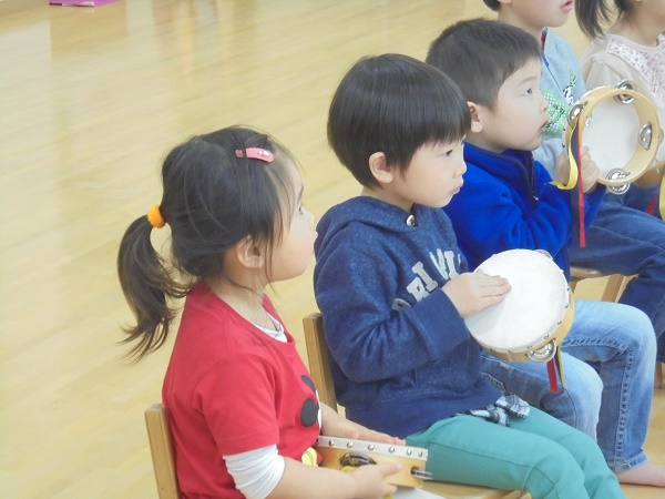 小坂園日記2018.04.05 楽しいリトミック♫ 勝山園 いつもと違う先生と「リトミックをあそび」しました♫ 先生の軽快なピアノに合わせて手遊びをしたり、 いろいろな歌をうたったりしました(^^♪ その後は、フープを使って体を動かしたり、 タンバリンやカスタネットなどいろいろな楽器にも触れることができました。 みんな興味津々で積極的に参加する姿が見られ、楽しくて充実した 時間を過ごせたようです(*^_^*)