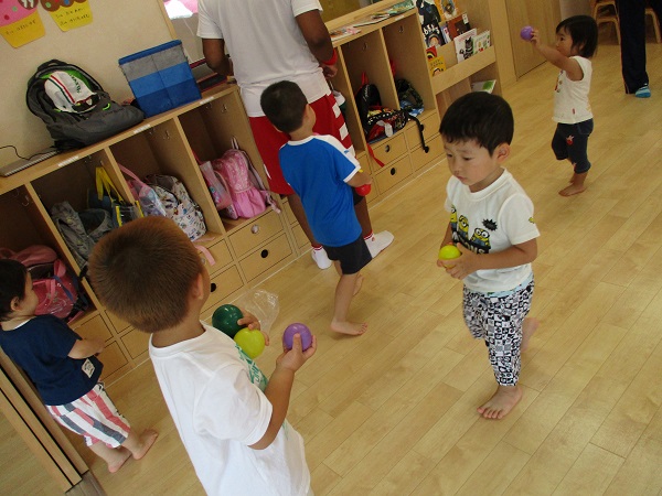 小坂園日記2018.08.15 楽しい英語教室♪ 小坂園 今日は、子ども達が大好きな英語教室でした♪ 始めは曜日を英語で言う練習。みんな真剣に考えています(`・ω・´) 次はケビン先生と勝負!!がんばれ~!(^O^)/ 大好評のボール拾いでは、「ぼくのほうが少ない」(:_;) なんてしょんぼりすることも。次は頑張ろうね! 小さい組さんも英語の曲に合わせてノリノリでした(*^-^*) これからも楽しく英語に触れあっていきたいと思います!