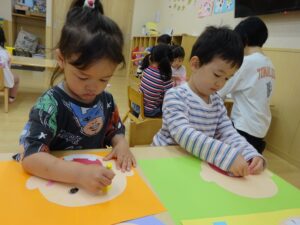 小坂園日記2025.05.30 歯磨き🦷 6月は虫歯予防集会があるということで壁面製作で歯の製作をしました! 「歯いっぱいあるよ!」と言いながら歯を貼ったり 目や髪の毛も「この色にする!」と言いながら真剣に取り組むことができていました😁
