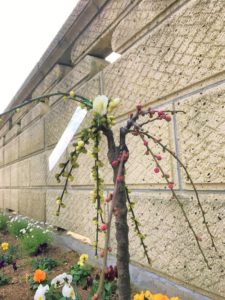 溝辺園日記2017.02.16 溝辺園・梅の花 ふと目をやると 溝辺園の花壇にある梅の木が 花を咲かせていました(*^▽^*) 今日はぽかぽかとあたたかかったので こんにちはと咲いてくれたのかな♪♪♪ 花壇の前を歩くときに見てみてね(^_-)-☆