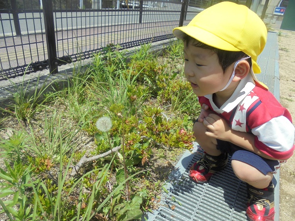 そしていちょう組さんはたんぽぽの綿毛を発見!!