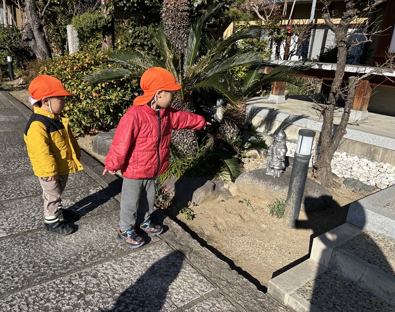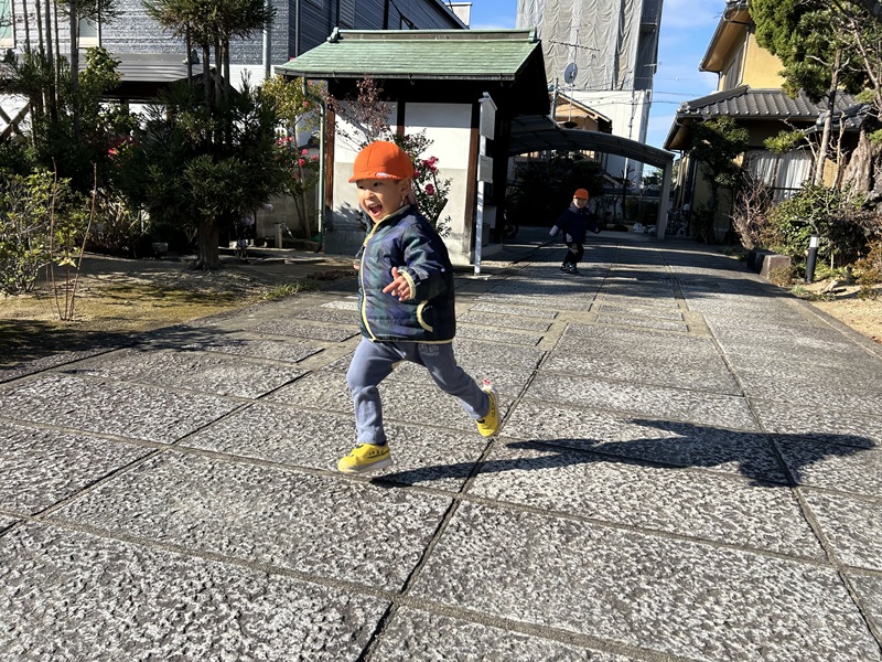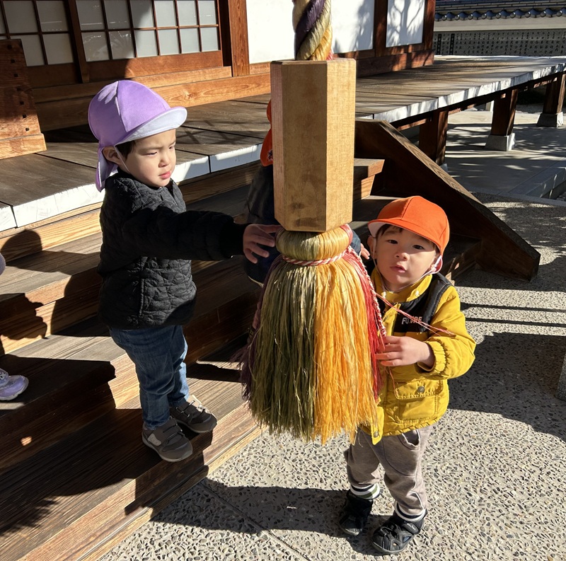 小坂園日記2026.01.09 神社に行ったよ♪(もみじ組) 皆で園の近くの神社にお散歩に行きました♪ 他にももう一つの神社にも参拝に行ったり、 近くの保育園のお友達に『おーい!』と手を振って挨拶をしたり… たくさん歩いてお昼寝はぐっすりのもみじ組さんでした☺