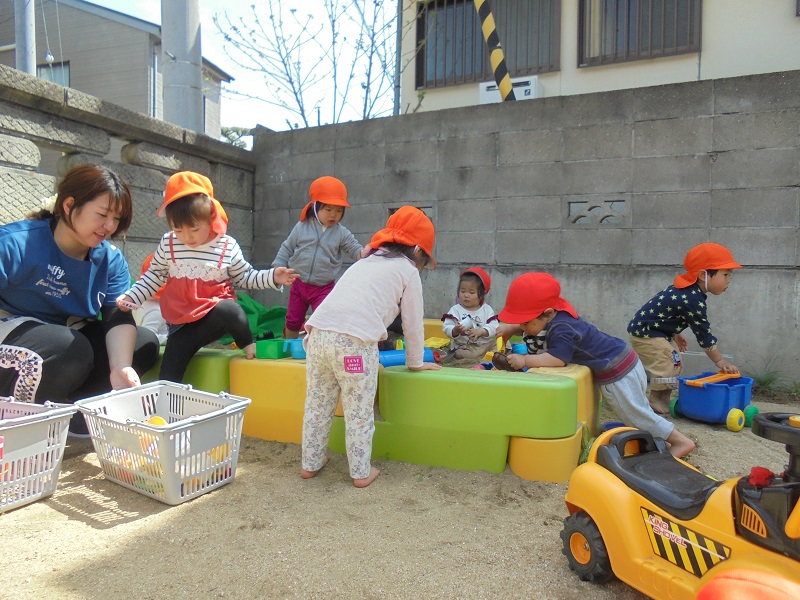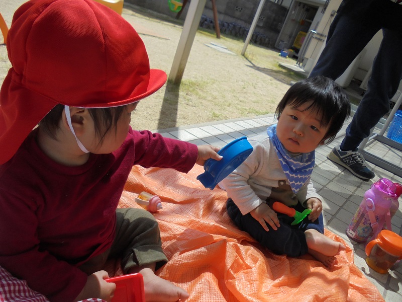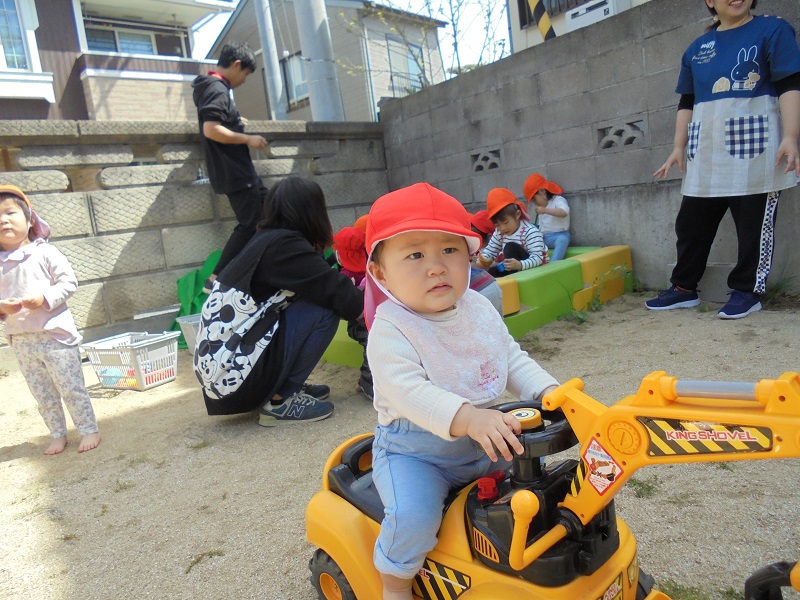 溝辺園日記2019.04.19 裸足で外遊び~👣溝辺園 裸足👣で外にでてみたよ♪ 砂の感触を楽しみました!(^^)! 「はい!どうぞ~😊」 「ありがとう💝」 「パワーショベルの運転ってむずかしなぁ~⁉」 また、あそぼうね☀