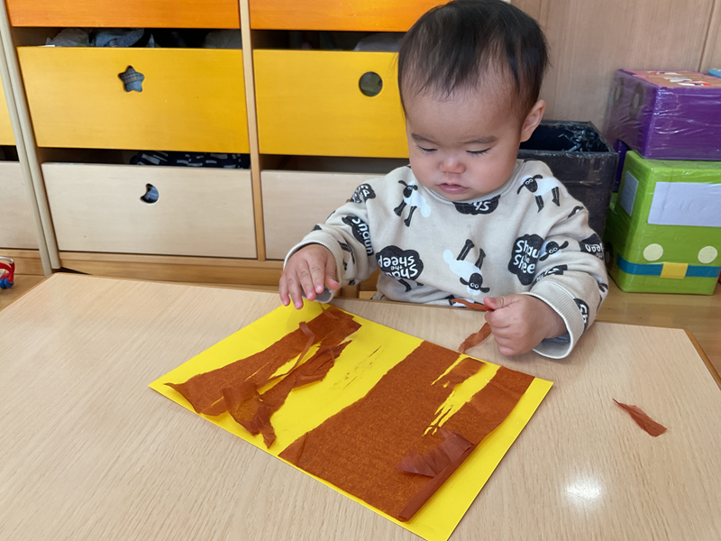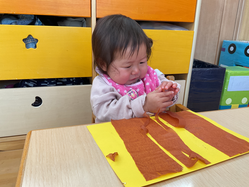 溝辺園日記2026.01.23 製作遊びをしました💕 鬼のパンツ👹の絵本を見て… 鬼さんのトラ柄パンツの製作遊びをしました✨ 上手に指先を使ってお花紙を破いています✨ ステキなトラ柄になりました💕 来月の節分集会が楽しみです!(^^)!