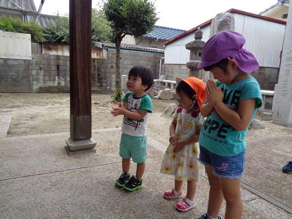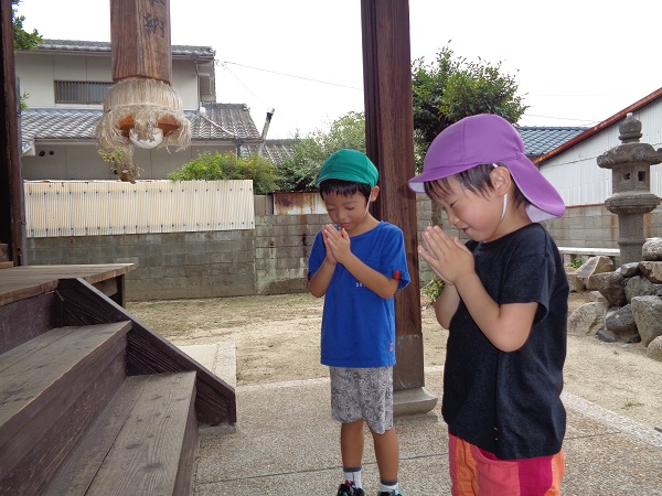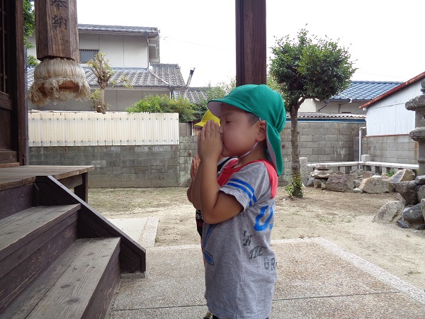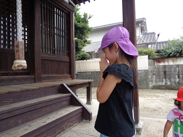 帰りに近くの神社によってお参りをして安全祈願をした子どもたちです。