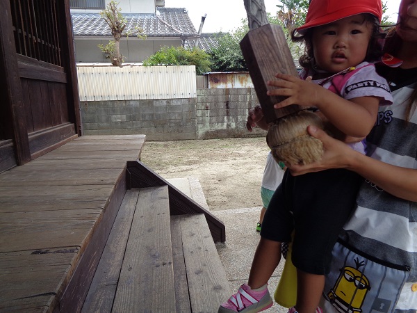 1歳児、2歳児もお兄ちゃんやお姉ちゃんと手をつないで頑張って歩くことができるできました。