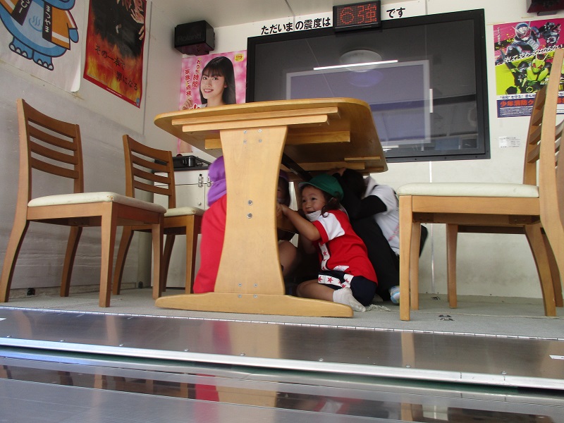 揺れて、「怖いよー」と涙ぐむ子もいました。