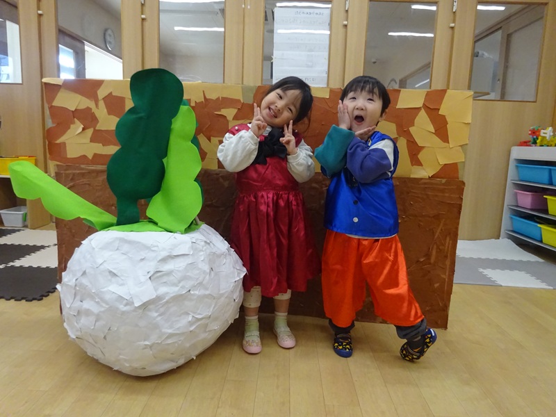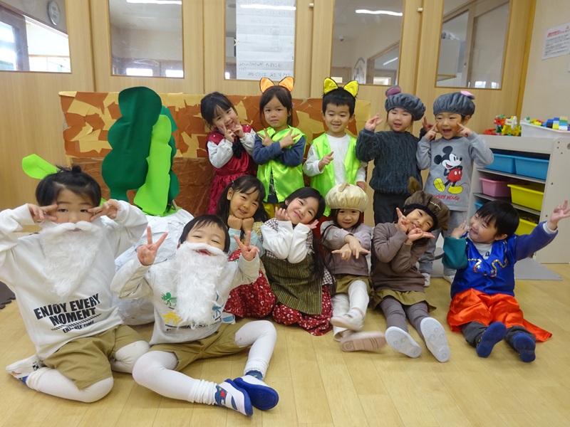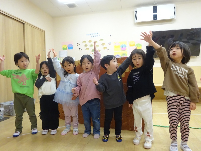 小坂園日記2025.12.16 頑張りました💮 お遊戯会無事終わりました😊 お忙しい中ありがとうございました。 練習とてもよく頑張っていて一生懸命取り組むことができ、本番も緊張しつつも堂々と発表できました😄 みんなで記念撮影📸 みんなよく頑張りました👏