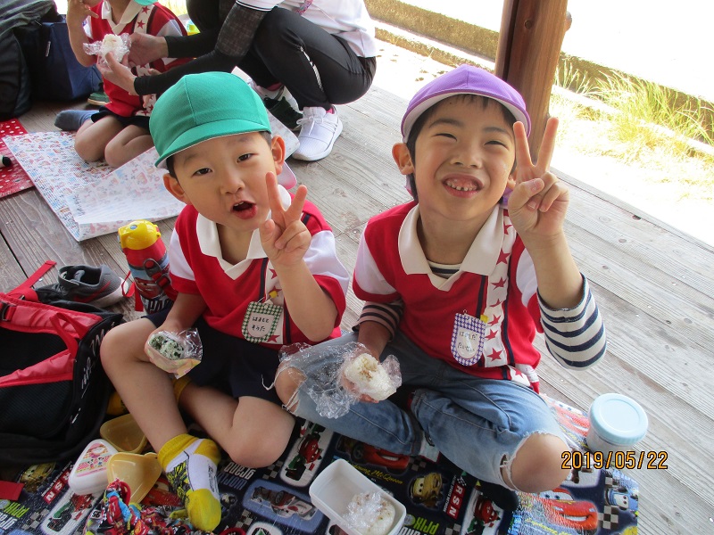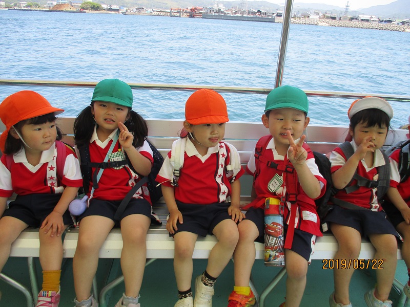 小坂園日記2019.05.23 鹿島にいったよ。 小坂園 鹿島に行くよ。 「やったー!」「ゆれるよ。」 みんなで船に乗ります。 「海だ。」「あれが鹿嶋だね。」 「鹿島に到着!」 「なにがあるのかな?」 「遊ぼう。遊ぼう。」 「写真とって。」 「こっちむいて。」 「はい。ポーズ。」 「いいでしょ。」 「おにぎり、おいしい。」 「いっぱい食べよう。」 「船に乗って帰りましょう。」