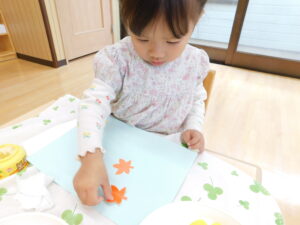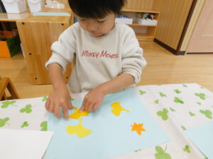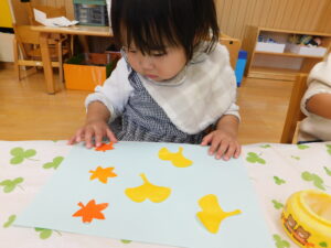 溝辺園日記2025.11.21 🍒お誕生日会&秋の製作🍂 今日はお誕生日会でした! 誕生日のお友だちを聞いてみると「○○くん!」とすでに分かっている園児もいて驚きました🌟 みんなで歌を歌ったり、「おめでとー!」と声をかけてお祝いしました♪ 秋の製作ではのりを使って折り紙で作ったもみじやいちょうを画用紙いっぱいに貼りました! のりに触るのを嫌がることなく一人で黙々とイチョウともみじ、好きな方を選びながら貼っている子もいれば、感触が苦手な子もいましたが、手を添えて一緒にすると嬉しそうにペタっと貼ることができました😄💕